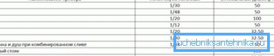 Pero para que el agua jabonosa se escape sin problemas, debe observar la pendiente de las tuberías de alcantarillado; esto es especialmente cierto para los edificios que están equipados con una taza de inodoro al mismo tiempo, es decir, también es necesario limpiar las heces. Para no equivocarse al colocar comunicaciones, puede utilizar la tabla de arriba.