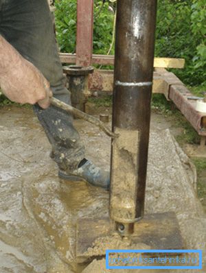Para el hundimiento, se utiliza equipo especial, a través del cual se puede levantar un gran volumen de arena a la vez. Esto acelerará el proceso de liquidación de la columna.