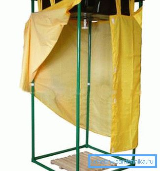 - Tanque de tela, que se llena cuando se conecta al suministro de agua. Este tipo ha salido a la venta hace relativamente poco tiempo, pero ya ha logrado ganar cierta popularidad. Tal tanque pesa un poco, por lo que es adecuado para cabinas con marcos livianos.