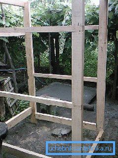 - A continuación, construir la estructura del marco, si la construcción es pequeña, entonces está suficientemente reforzada con barras transversales, y para estructuras de mayor escala, se necesita refuerzo adicional con tirantes, que fijan las esquinas de la barra.