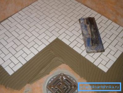 - No olvide retirar el exceso de pegamento y controlar el ancho de las costuras., Si son mínimas, entonces la superficie será uniforme. Ducha de mosaico