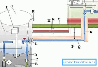 - P - aislamiento; como muestra la práctica, el aislamiento térmico organizado no da el efecto deseado, es mejor calentar la tubería directamente;