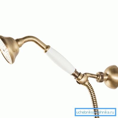 Inmediatamente, notamos que los sujetadores de este tipo se usan con mayor frecuencia en la disposición de las paredes de la estructura, ya que con una regadera para techo se fija de manera rígida, y con la versión manual, el soporte está inicialmente presente en la estructura. Nuevamente, hay accesorios para duchas, pero también están inicialmente en el set, aunque a veces tienes que elegir la ubicación tú mismo.