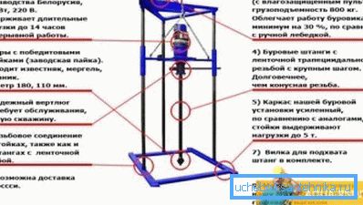 Dado que la herramienta principal en el trabajo será el agua, existe un mecanismo funcional que lo hace funcionar. Plataforma de perforación de tamaño pequeño (MBU): un dispositivo simple, móvil y fácil de instalar.
