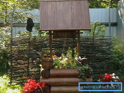 - Pozos de madera decorados al estilo de antiguas torres rusas o edificios de troncos. En este caso, se utiliza una barra, tronco o casa de bloques.