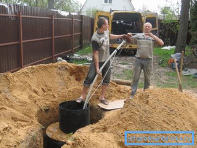 - Conecte el sistema de suspensión al cabrestante y baje la bomba al pozo. Al mismo tiempo, nos aseguramos de que la carcasa del dispositivo no toque las paredes, ya que durante el funcionamiento es posible que las piezas se dañen con un riesgo de fugas.
