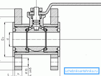 - Dado que el elemento de control es móvil, se utilizan juntas poliméricas para su fijación y sellado, que ocupan prácticamente todo el espacio libre.. Vale la pena señalar que incluso una válvula de bola con una caja de engranajes, si este elemento está dañado, no tiene fugas, porque el agua no puede entrar físicamente debajo de la válvula.