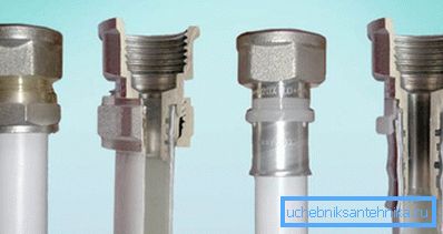 Estos tipos de conexiones se encuentran con mayor frecuencia cuando se conectan tuberías viejas con nuevas durante la reparación o el reemplazo programado. Directamente no se pueden combinar, porque los materiales son diferentes y tienen diferentes coeficientes de expansión y resistencia. Por lo tanto, es necesario aplicar diferentes tipos de elementos que permitan conectar tuberías de metal-plástico con tuberías de metal.