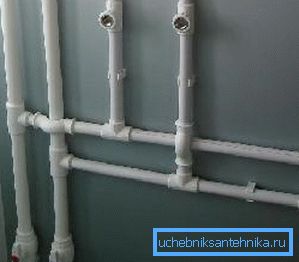 El cableado se puede hacer a lo largo de la pared, fijando el tubo a los soportes, como en la foto de arriba, pero también puede ahogarlo en la pared haciendo molinos y un perforador para esto. Trate de marcar claramente la ubicación de los baños, de modo que las tees incrustadas se correspondan con la posición del sifón, el fregadero o el fregadero.