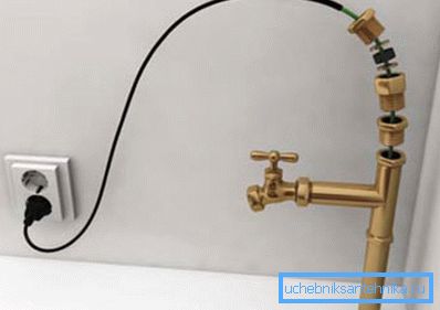 Este método se distribuye ampliamente debido a su bajo costo y facilidad de instalación. Su esencia radica en el hecho de que a lo largo de todas las tuberías, sin excepción, se coloca un cable de calefacción especial.