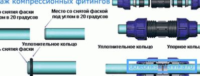 Sin embargo, otro esquema se utiliza para tubos de cobre suave y metal-plástico. El accesorio colocado dentro de la tubería está rizado por sus paredes por medio de un anillo partido.