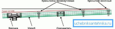 Sugerencia El soporte está montado en cada una de las paredes. Es importante mantener un ángulo de inclinación claro, de lo contrario el agua se estancará. Como regla general, el ángulo de inclinación es de 1 cm por 1 metro de tubería.