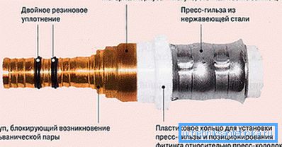 - Antes de instalar tuberías de metal y plástico, debe asegurarse de que haya anillos de sellado de goma en los accesorios.. Además, debe verificar la integridad de la junta de PTFE, que es necesaria para la instalación de los accesorios de prensa.