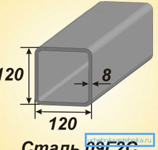 En primer lugar, hay que decir que el material hecho de acero con un grosor de 8 mm se usa muy raramente. Esto se debe al hecho de que incluso el peso de la tubería de 120x120x6 es de 21.48 kg, que es 6.65 kg menos que este producto.
