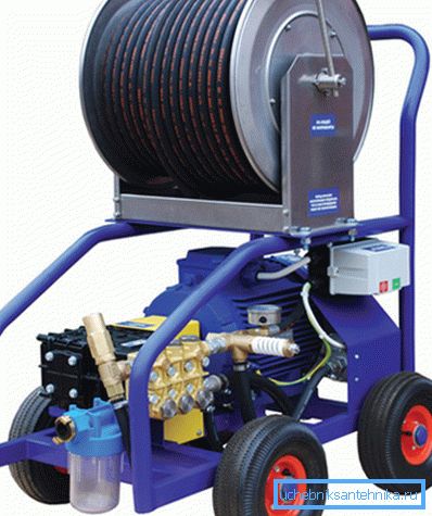 Esta unidad funciona en una red de 380 V, porque tiene una potencia impresionante. El método de impacto hidrodinámico (el agua caliente se suministra con una fuerte presión) elimina cualquier problema.