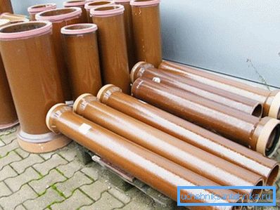Los tubos de cerámica están hechos de arcilla, luego se encienden en hornos, se cubren con esmalte, y las juntas se sellan con resinas. Este enfoque asegura su servicio casi eterno. Pero su desventaja es la fragilidad y un peso muy grande. Antes de instalarlos, es necesario inspeccionar cuidadosamente las juntas para que no haya lavabos ni grietas, ya que Posteriormente el agua se filtrará. Los constructores experimentados pueden determinar la calidad del sonido, cuando golpear con un martillo no se debe escuchar demasiado ruido.
