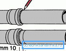 - Luego mueva la parte hacia atrás 10 mm. Medirlo ayudará a marcar. Esta brecha puede compensar la expansión lineal de la tubería como resultado de la alta temperatura del fluido que fluye a través de ella.