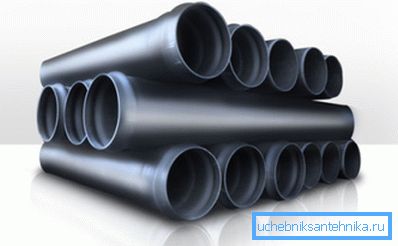 | Cloruro de polivinilo | Las tuberías están muy extendidas para la disposición de alcantarillas de gravedad. No están sujetos a los efectos negativos de la luz solar directa y tienen un pequeño coeficiente de expansión lineal bajo la influencia del agua caliente. Este material no se destruye por el flujo de agua, cuya temperatura alcanza los 70 grados centígrados. Pero existe un peligro de destrucción del sistema de alcantarillado bajo la influencia de químicos agresivos y detergentes sintéticos. |