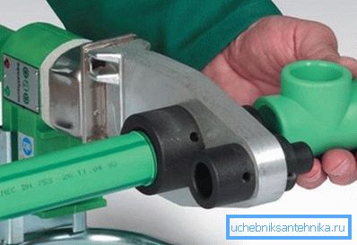 - En el soldador, debe ajustar la temperatura a 260 ° C, luego colocar el acoplamiento para conectar los tubos a la boquilla adecuada e insertar el extremo del tubo en la cabeza de teflón. El tiempo de calentamiento depende del diámetro y el espesor de la pared, se indica en las instrucciones o tablas especiales;