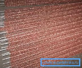 - Después de eso, una tira de cobre, que es prácticamente presionada hacia adentro, comienza a colocarse en las ranuras hechas bajo estiramiento. Algunas máquinas al mismo tiempo usan calefacción adicional, si se proporcionan sus instrucciones para la fabricación de estos productos.