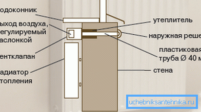 - válvula de ventilación de aire fresco debajo del alféizar de la ventana - la misma pared, pero instalada encima del radiador de calefacción debajo del alféizar de la ventana;
