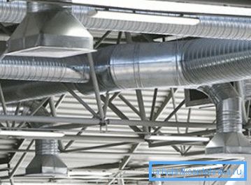 Los conductos de ventilación en los locales industriales suelen estar unidos al techo. Después de eso, se pueden enmascarar colgando paneles decorativos. En locales comerciales, es recomendable utilizar conductos de aire de plástico o cobre, que tienen un aspecto más atractivo.