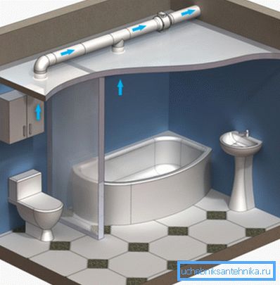 Todos los baños necesitan ventilación y, con mayor frecuencia, incluso el reemplazo forzado del aire, que se realiza a través de la pared. Pero la ventilación en el baño stalinki o en un proyecto especial es posible incluso a través del techo, que alcanza 3-3.5 m de altura.